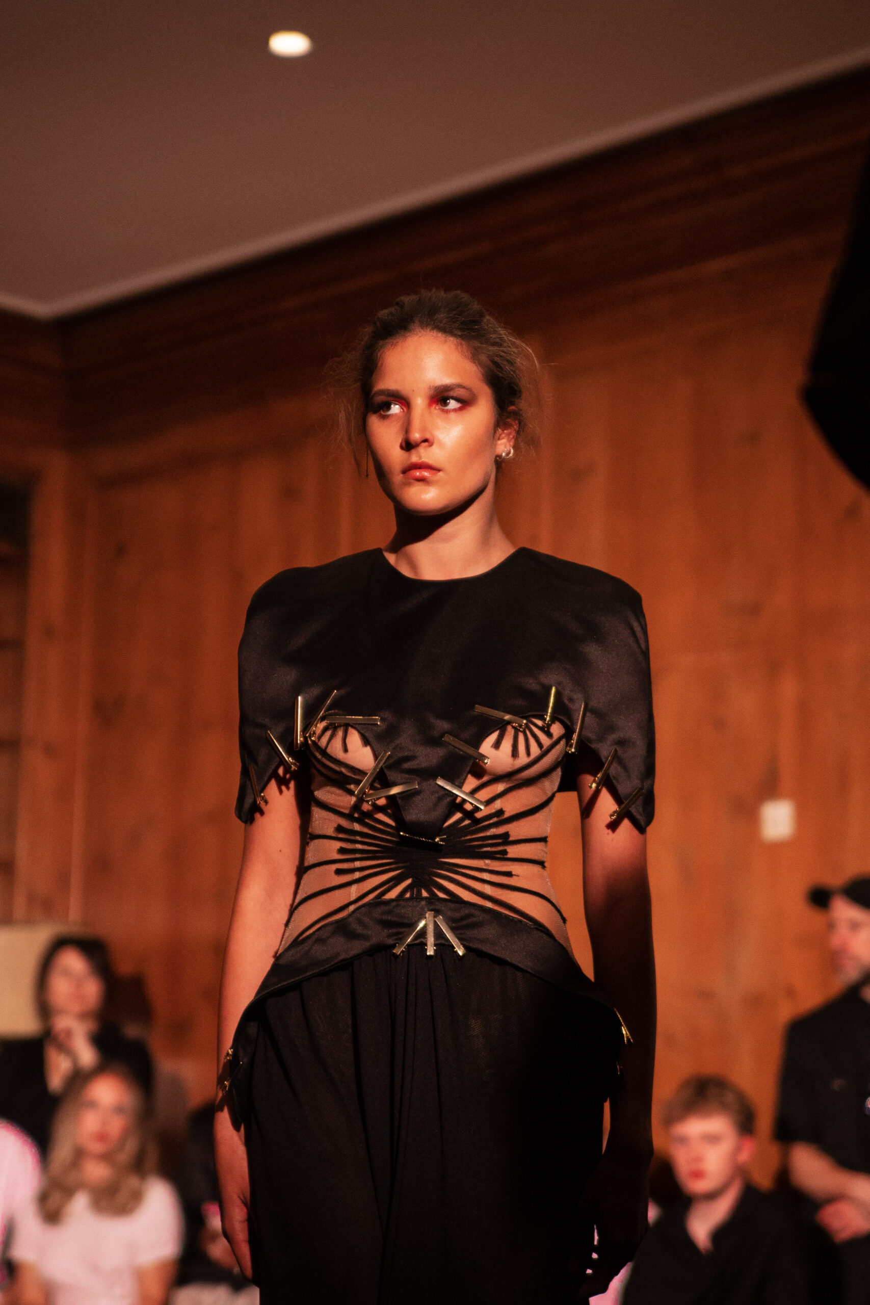 A Golden Shroud reimagines death not as finality but as transformation. Clerical robes and sacred iconography inform tailored silhouettes that balance dualities – urban and elegant, delicate and powerful, sacred and everyday. The titular golden shroud becomes a metaphor for resilience and renewal, with each piece reflecting a process of reinvention.