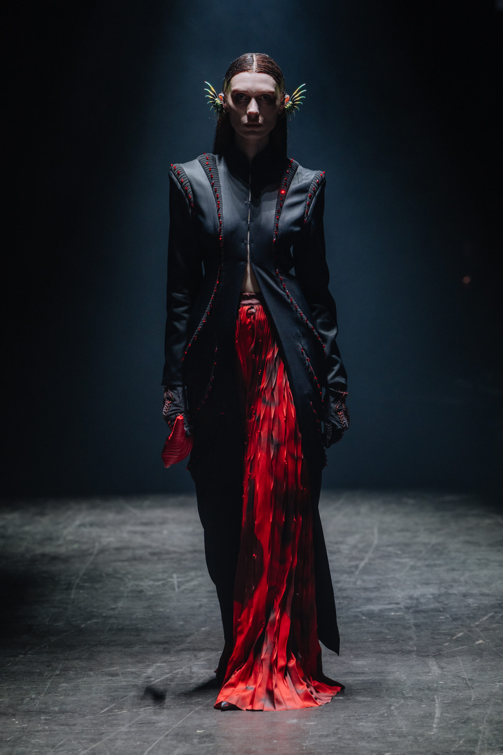 Hengdi Wang’s vision is uncompromisingly ambitious. It is haute couture as philosophy, as anthropology, as science fiction. With EXOGENESIS, Wang doesn’t just clothe the body—he encodes it, embedding it in a continuum between myth and post-human futurism. By the end of the show, the line between what is organic, what is digital, and what is imagined collapses entirely, leaving a lingering sense that fashion might just be the next vessel for humanity’s collective memory.