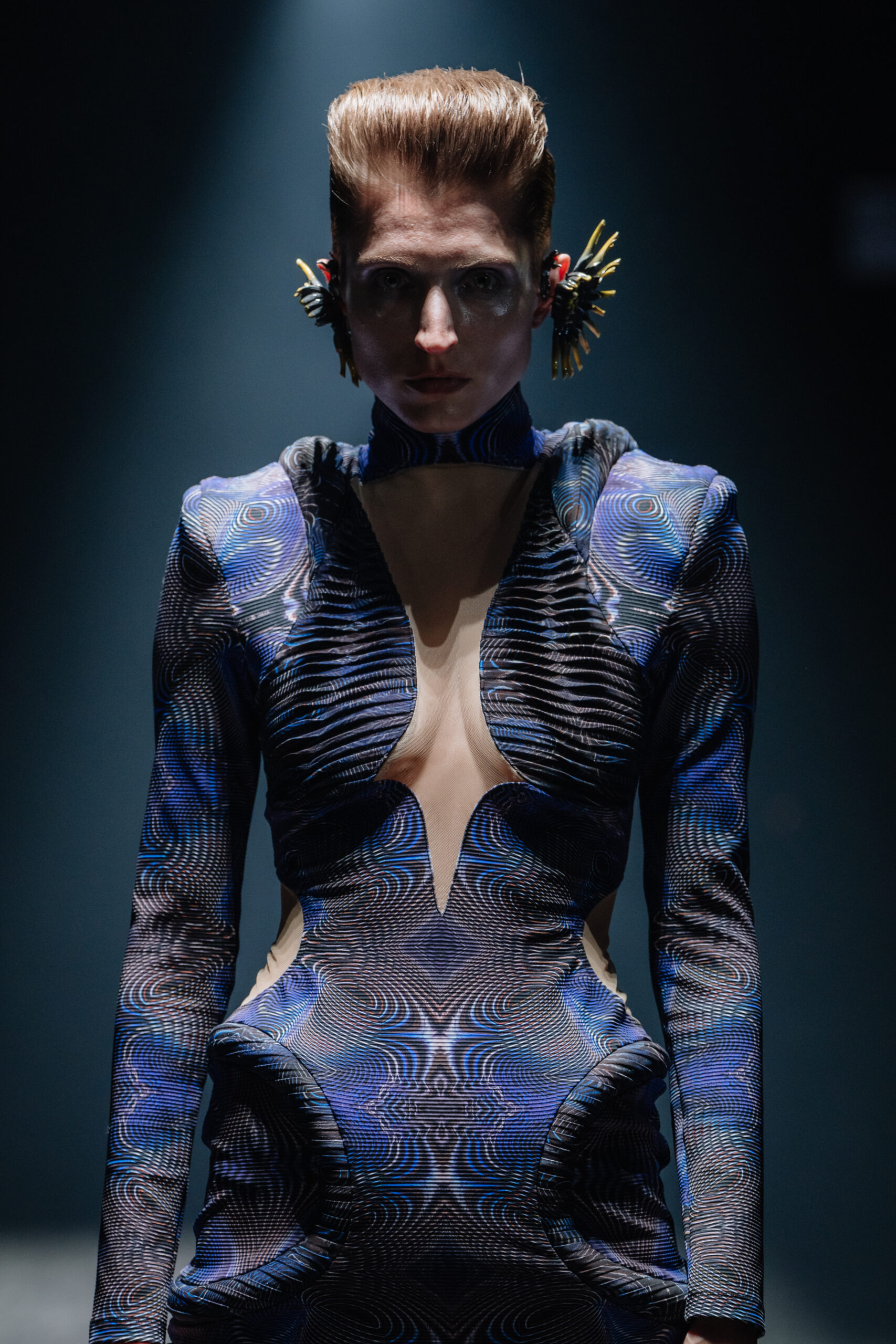 EXOGENESIS, as the designer frames it, is a meditation on the origins of life—both terrestrial and otherwise—where Eastern mythology collides with post-human forms, digital craftsmanship, and 3D-printed futurism.