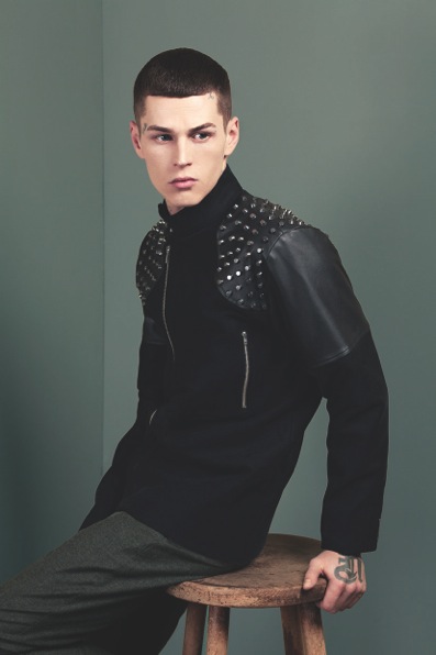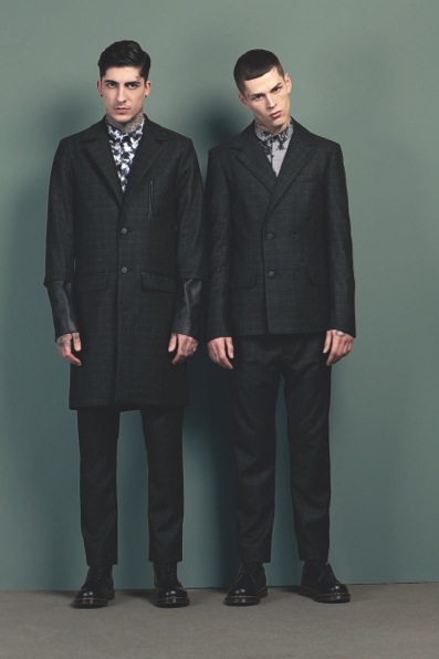 Loosely drawing inspiration from Marlon Brando in The Wild One and Walter Hills, SOPOPULAR delves into the world of subcultures and visualising this through fashion. The collection of layered shirts, fitted trousers and blazers focuses around a muted palette of blacks, greys, forest greens and slices of deep purple. SOPOPULAR are particularly vocal about their agenda to play with, what they describe as, “romantic detailing” and “stern masculine power-dressing”. They achieve this in their clothes with help from the use of waxed cottons, leather, suede, wool and selected sheer poplins.