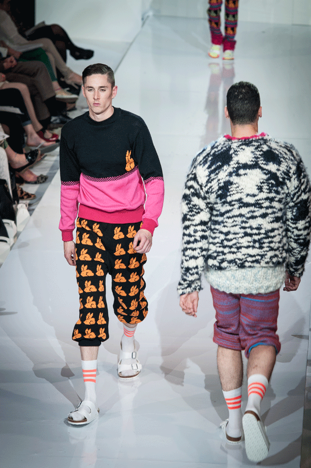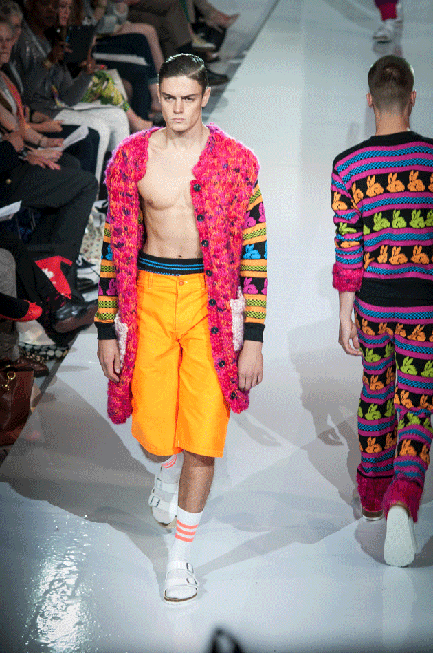 If there’s one thing London does well it’s colour. And knitwear. And experimentation. So seeing Colin’s hyper-coloured men’s knitwear was a joy to behold (not least for the bunny patterns on the shorts and jumpers!). Cute but with attitude, either way these knits are total hits in my book.