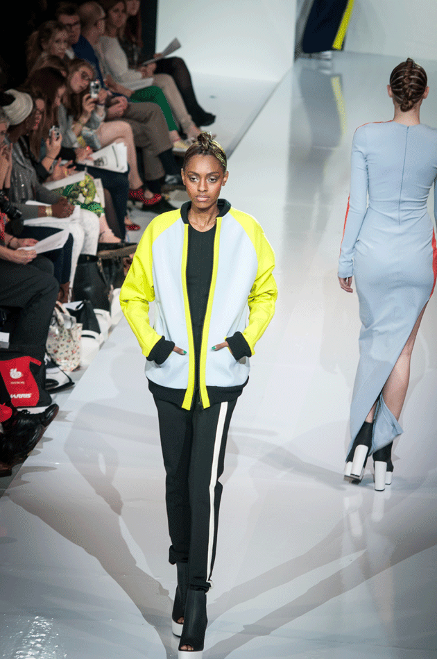 Exploring the lines that flow through the human form, Myvany Everett created something architectural whilst retaining a sense of fluidity. Shapes and silhouettes were sporty and fused with an air of femininity made for a strong collection right from the beginning.